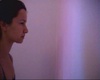 A woman is fighting against a wall. She bangs and drums against it. At the end she abandons and droops her hands.